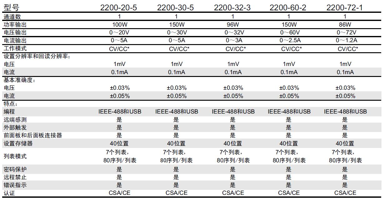 無論在研究實驗室,在設計和開發,還是在生產測試中,2200系列可編程直流電源的寬范圍電壓輸出都適于測試和分析元器件、電路、模塊和整個設備的特性。2200系列由提供20V~72V輸出電壓和86W、96W、100W和150W功率的5個型號組成。這些電源既可以用作恒流源也可以用作恒壓源。2200系列在自動測試系統和在手動儀器配置中具有同樣高的運行效率。