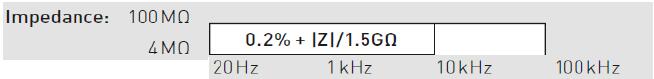元件的值,將設置在公式中:在1KHz 時精度=0.2%+15MΩ ÷1.5GΩ =0.2%+0.01
