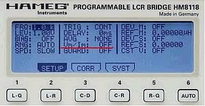答:測量簡單的電阻或電感,你需要在HM8118電橋的面板上打開 L-R 模式。如果你操作了此功能,在HM8118 上你能直接讀出電阻和電感值。