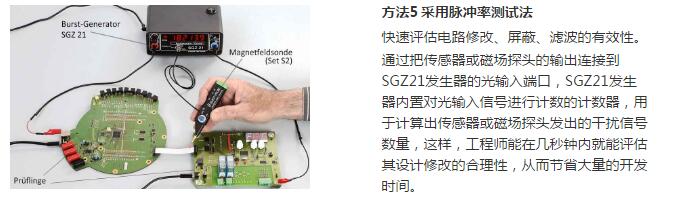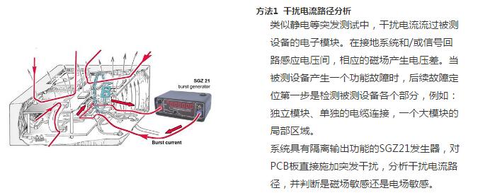 OIE1研發(fā)階段抗擾度測(cè)試套件也為抗干擾開發(fā)系統(tǒng),用來模擬所開發(fā)出來設(shè)備的干擾過程,干擾電流、電場(chǎng)和磁場(chǎng)直接注入到電子模塊,以不同方式來確定電路板上的敏感結(jié)構(gòu),了解耦合機(jī)制,使設(shè)備達(dá)到最佳抗干擾能力。