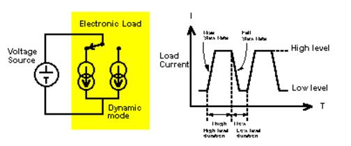 5、動態負載:動態負載操作是周期性在兩個負載狀態之間切換。電源的調整率和瞬態反應在高低電流水平、持續時間和升降率的混合變化下用示波器監視它的輸出電壓波形。動態負載模式應用于測試電源的整體回路反應,即瞬時響應和回復時間(RecoveryTime)測試。實際上大部份負載為動態負載,例如計算機磁盤驅動器動作或不動作時工作電流的變化,動態負載模式能仿真這種狀況(脈沖型負載)。